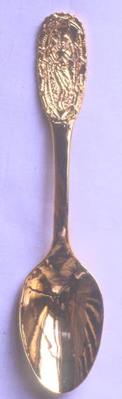 Sterling Silver & 24k Gold Plated Brass Spoons for the orisa: Obatala, Yemoja, Sango, Osun with the orisa's odu Ifa on the handle back (see Obatala) (Each spoon is 7.5" long) Silver Plated-$200.00 each Gold Plated-$250.00 each